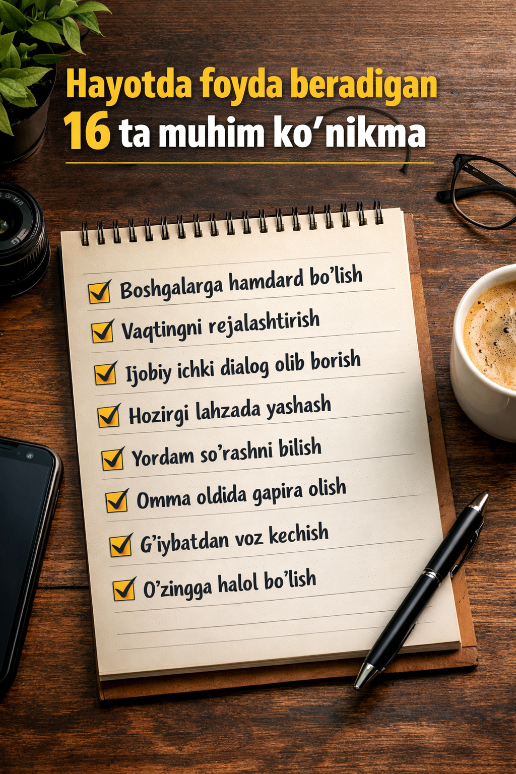 Bu ko‘nikmalar sizga o‘zingiz bo‘lib qolishga, odamlar bilan yaxshi chiqishishga va hayot bilan uyg‘unlikda yashashga yordam beradi.