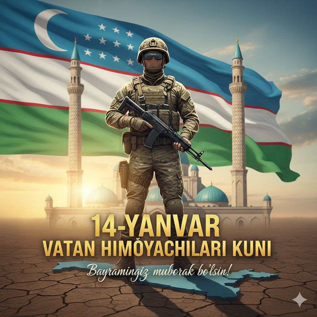 Bosh sahifaKun FotosiHammani bayram bilan tabriklaymiz! Hammani bayram bilan tabriklaymiz! 14 Yanvar 2026 Oqish: 1 daqiqa 4 komment Yoqdi: 4 Harbiy erkaklar va ayollarni, huquqni muhofaza qilish organlari xodimlarini va xalqqa xizmat qilayotgan va uning tinchligini himoya qilayotgan barchani tabriklaymiz.