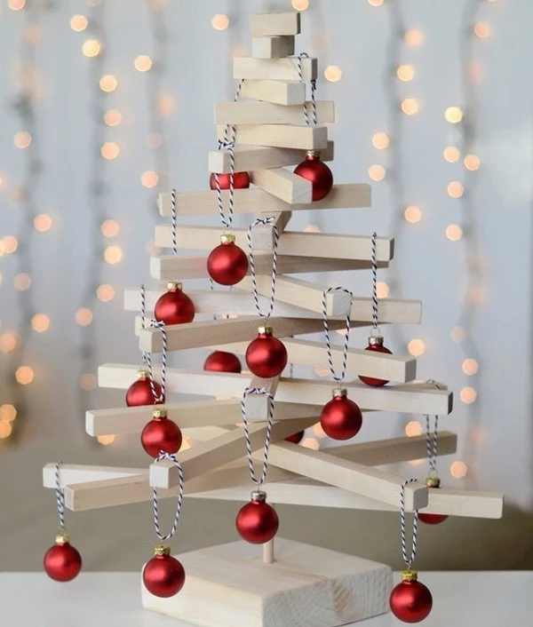 Ish stolini xuddi shunday archa bilan bezash mumkin. Buning uchun turli xil kichik o‘lchamdagi taxtalar kerak bo‘ladi. Ular dastlab bo‘yaladi va chiroyli ko‘rinishga kelgach, bir-biriga mahkamlanadi. Bayramdan so‘ng archani yig‘ish va kelasi yilda yana qayta yasash mumkin.