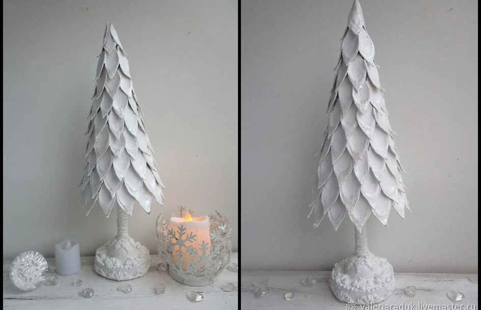 Buning uchun ko‘p narsa talab etilmaydi. Shunchaki kartondan konus shaklini yasab olish yoki uni do‘konlardan xarid qilish mumkin. So‘ngra atlas tasmalar bir xil uzunlikda kesib chiqiladi. Xohishga ko‘ra, qizil va yashil tasmalardan foydalanish mumkin. Ular yelim yordamida konusga yopishtiriladi va yulduzcha uchun tilla yoki kumushrang tasmadan bezak beriladi.